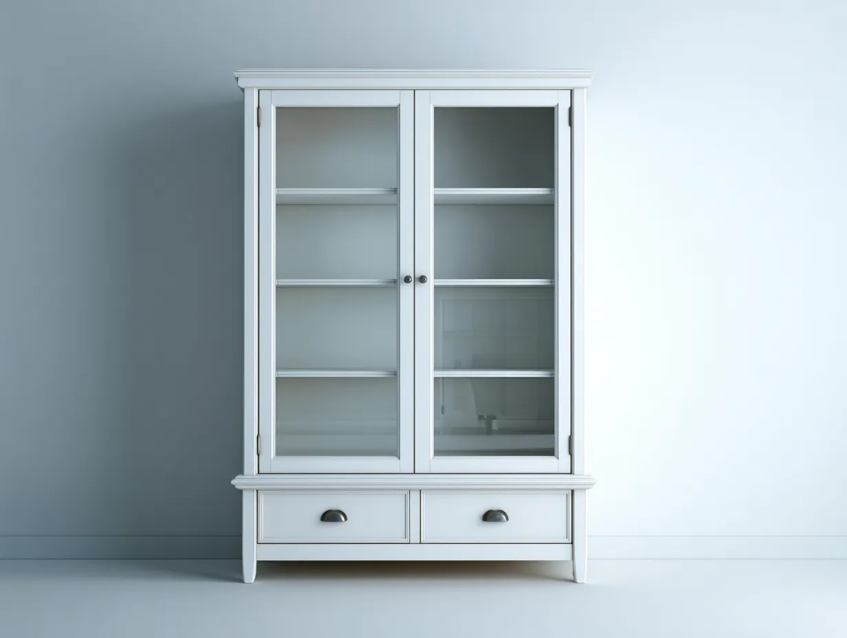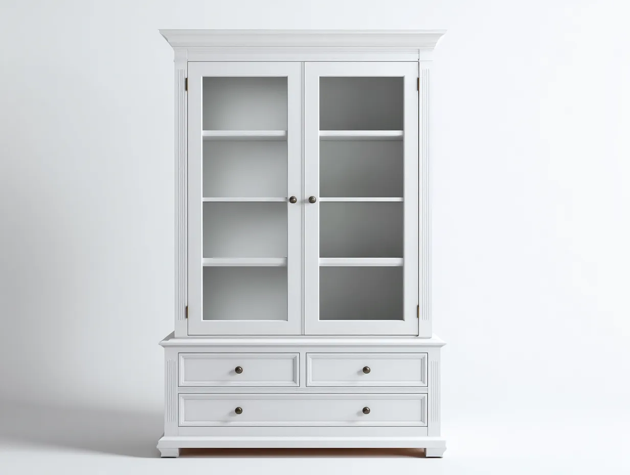 Vetrina-Legno-Vetro-105x45x200 cm-Bianco-Design classico
