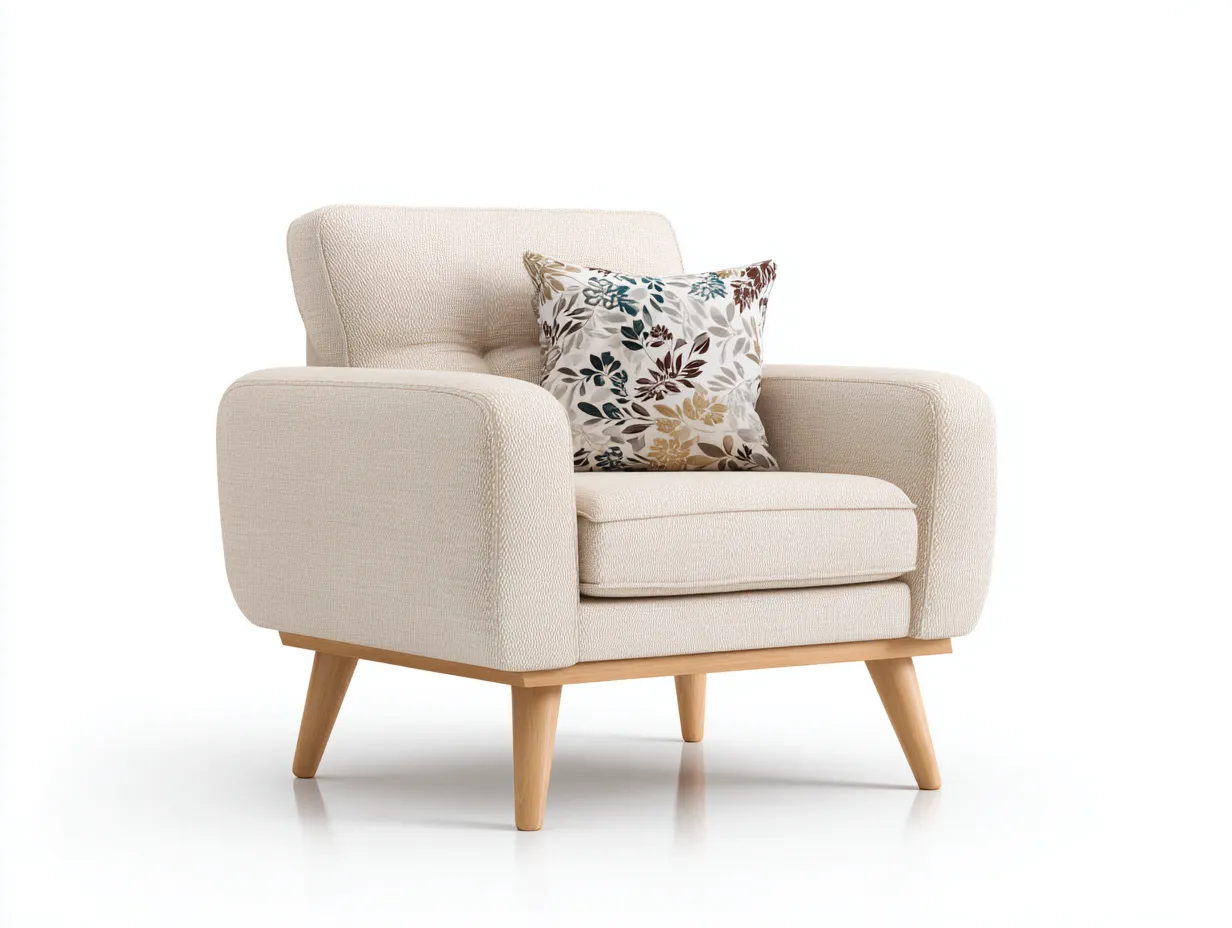 Poltrona - Tessuto-Legno - 83x77x81 cm - Beige chiaro - Stile moderno